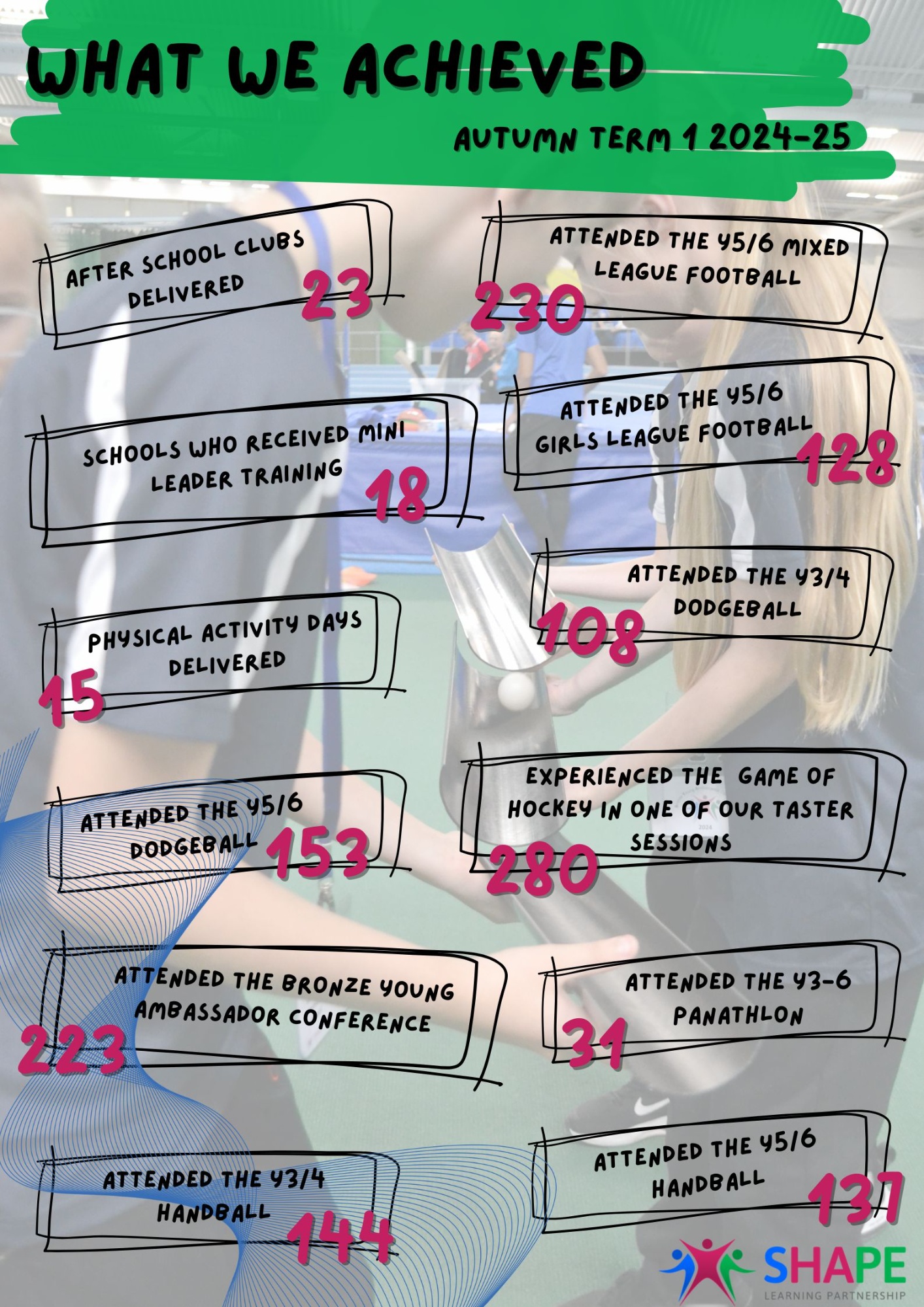 16 SHAPE schools completed (top 3 – Well done!)