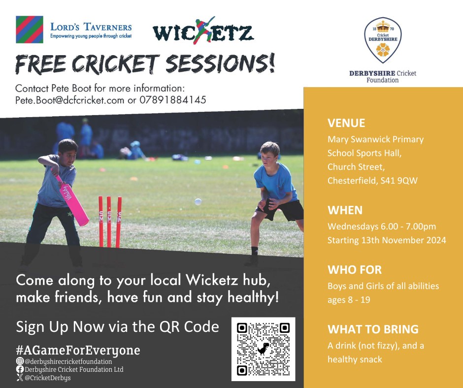 With this in mind, they have gained funding for 3 free all-year-round cricket opportunities in the Chesterfield area.