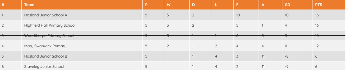 Y5/6 Girls & Mixed Football League Table