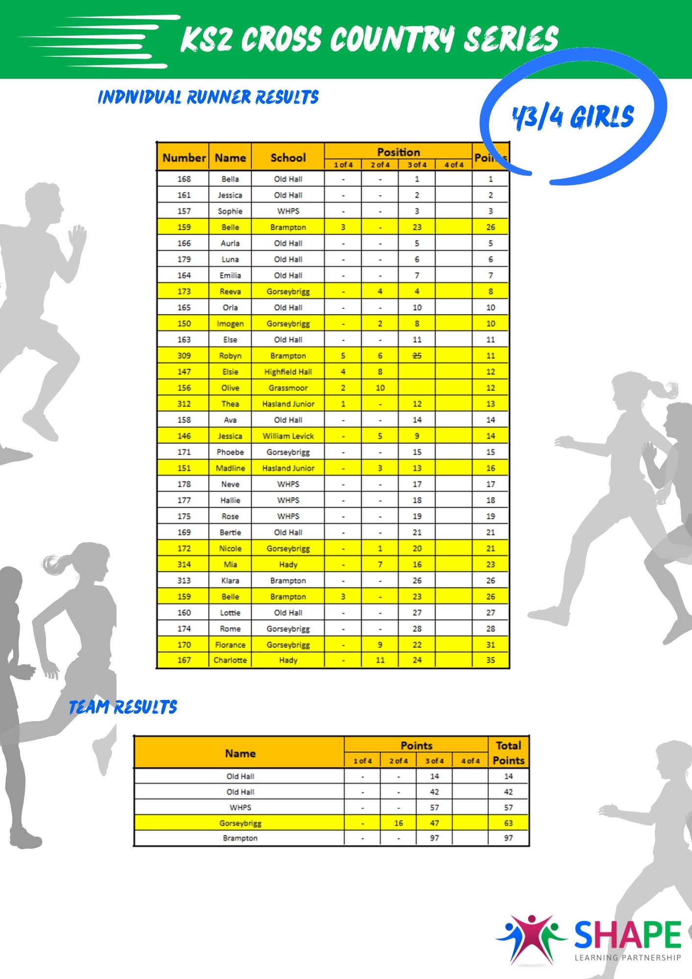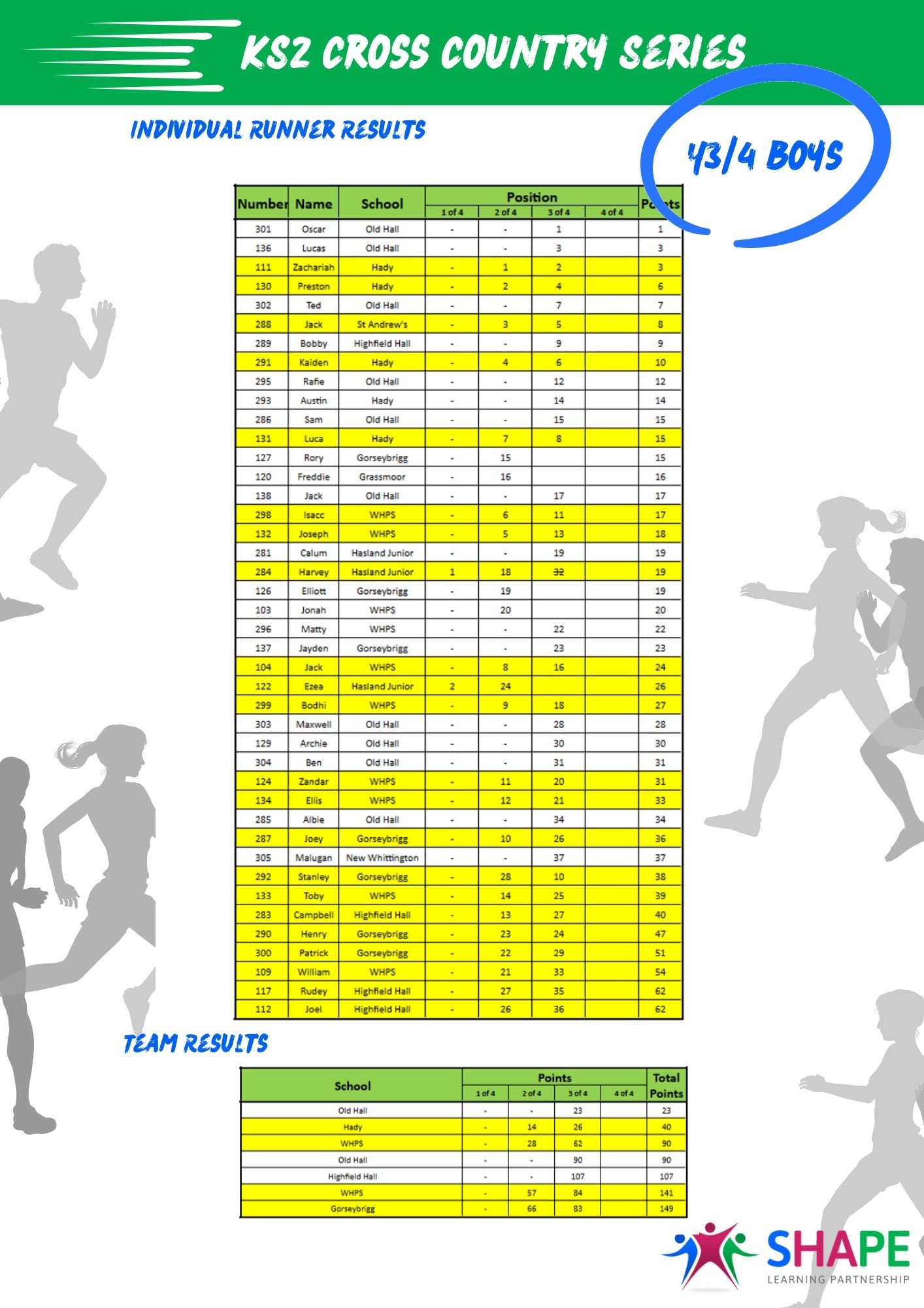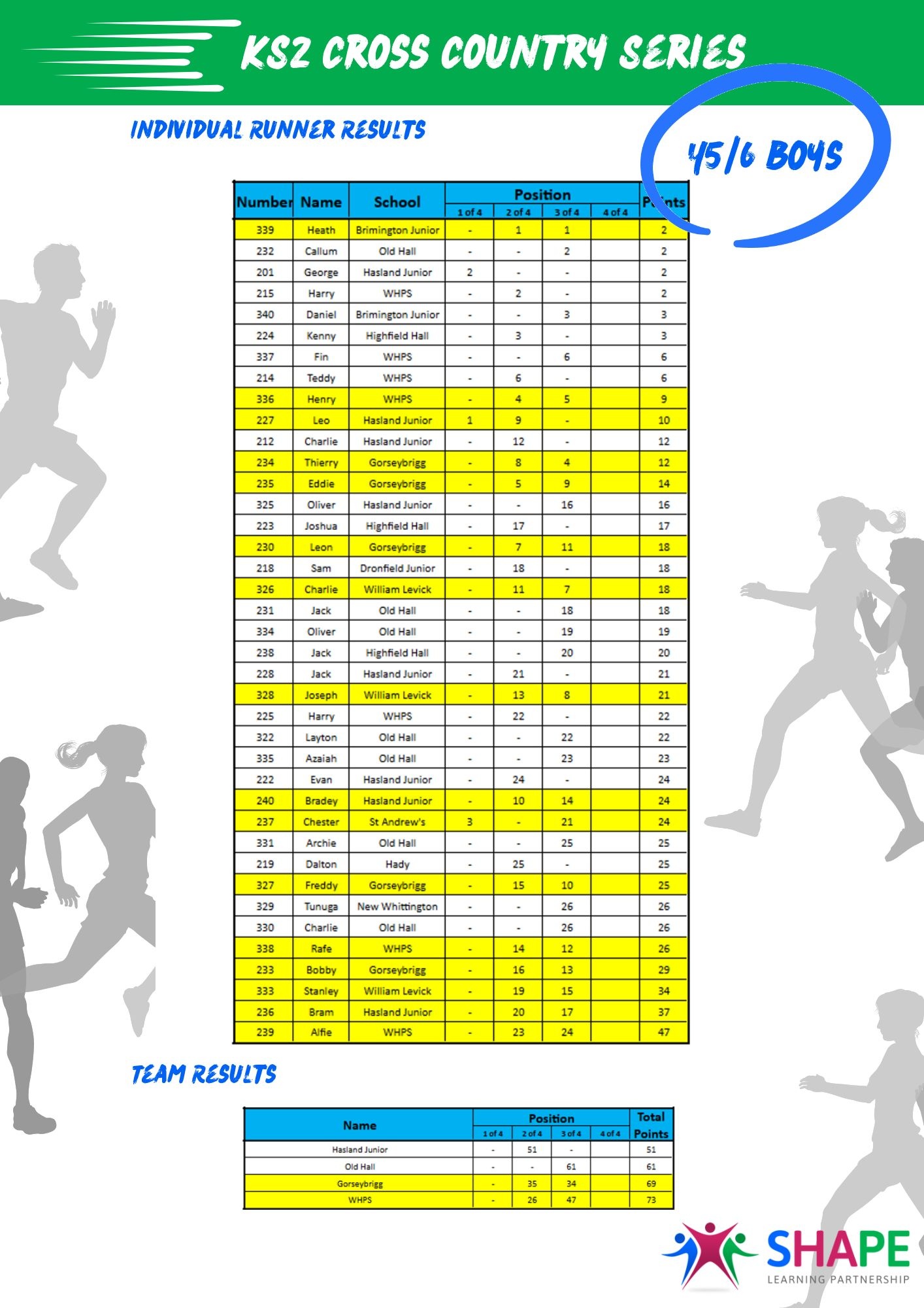 KS2 Cross Country Series - League Table
