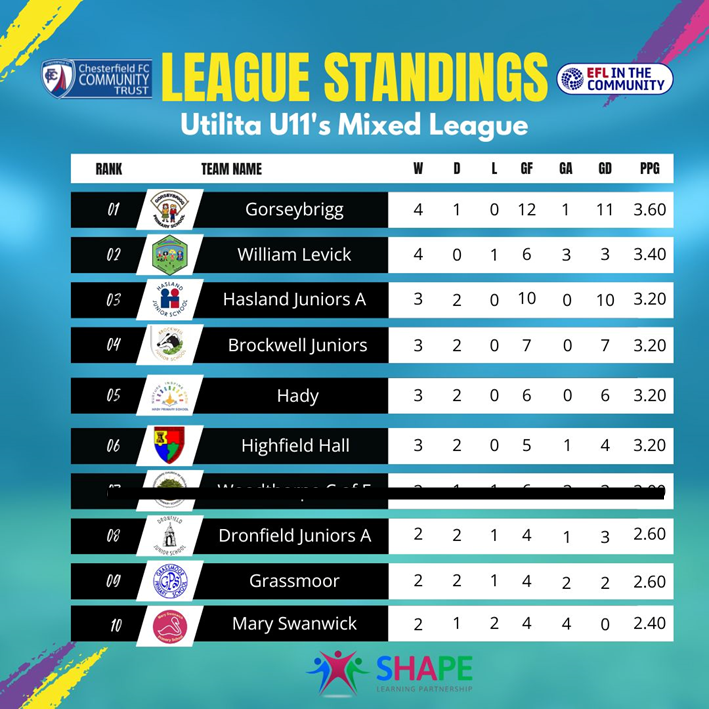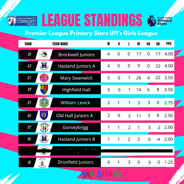 Y5/6 Girls & Mixed Football League Table