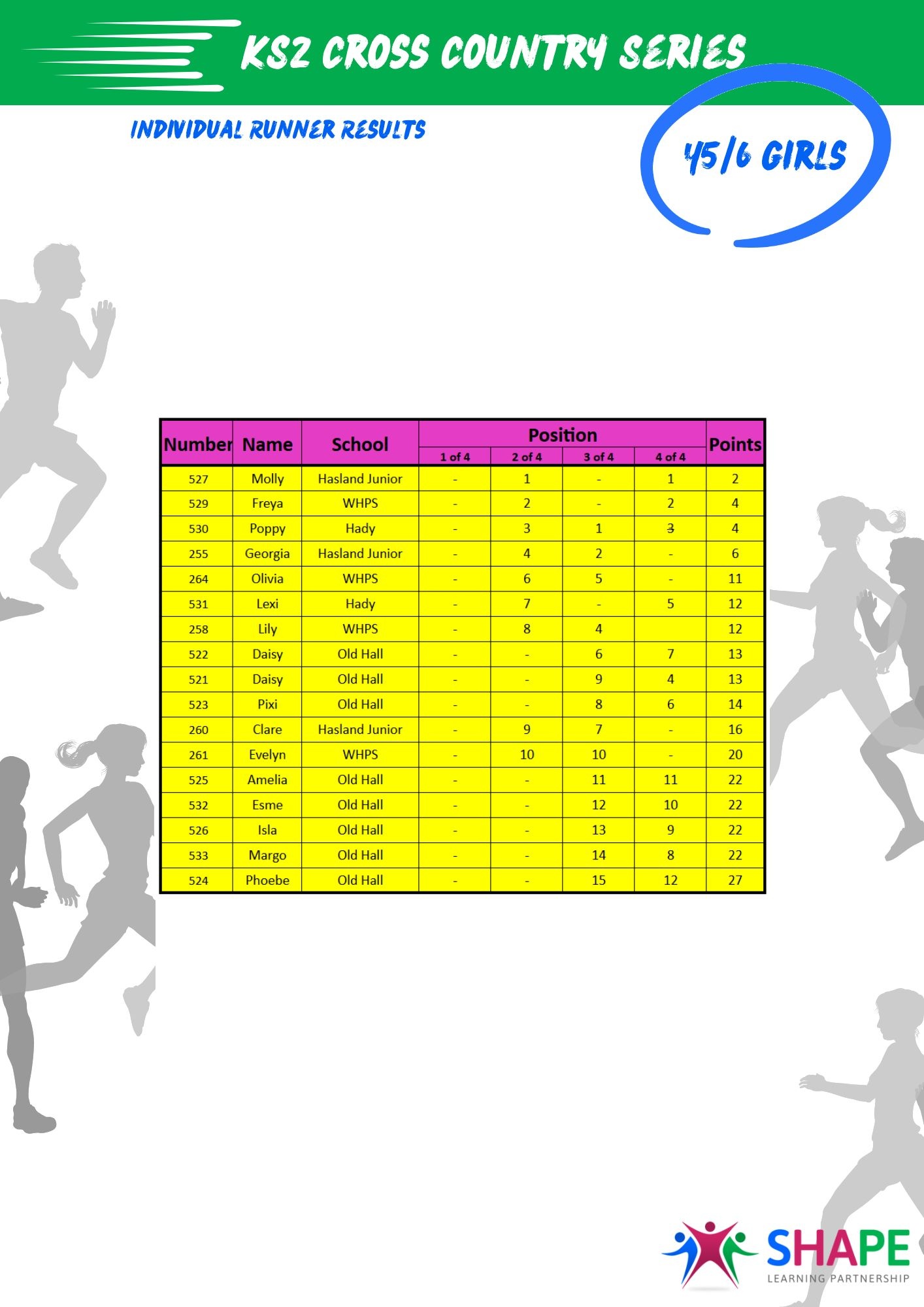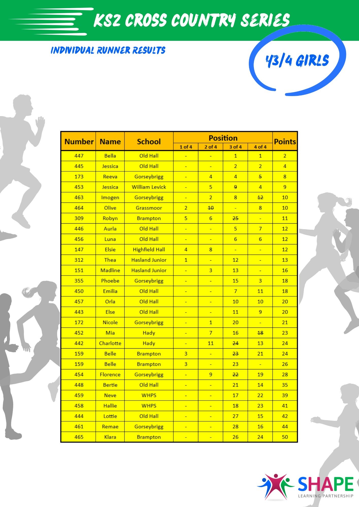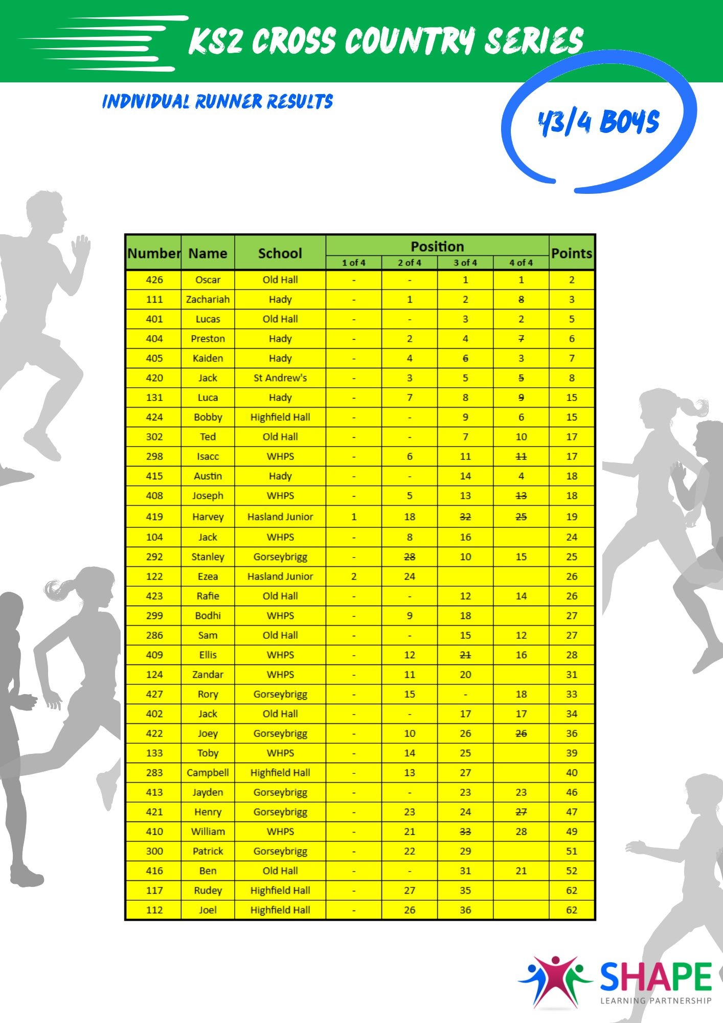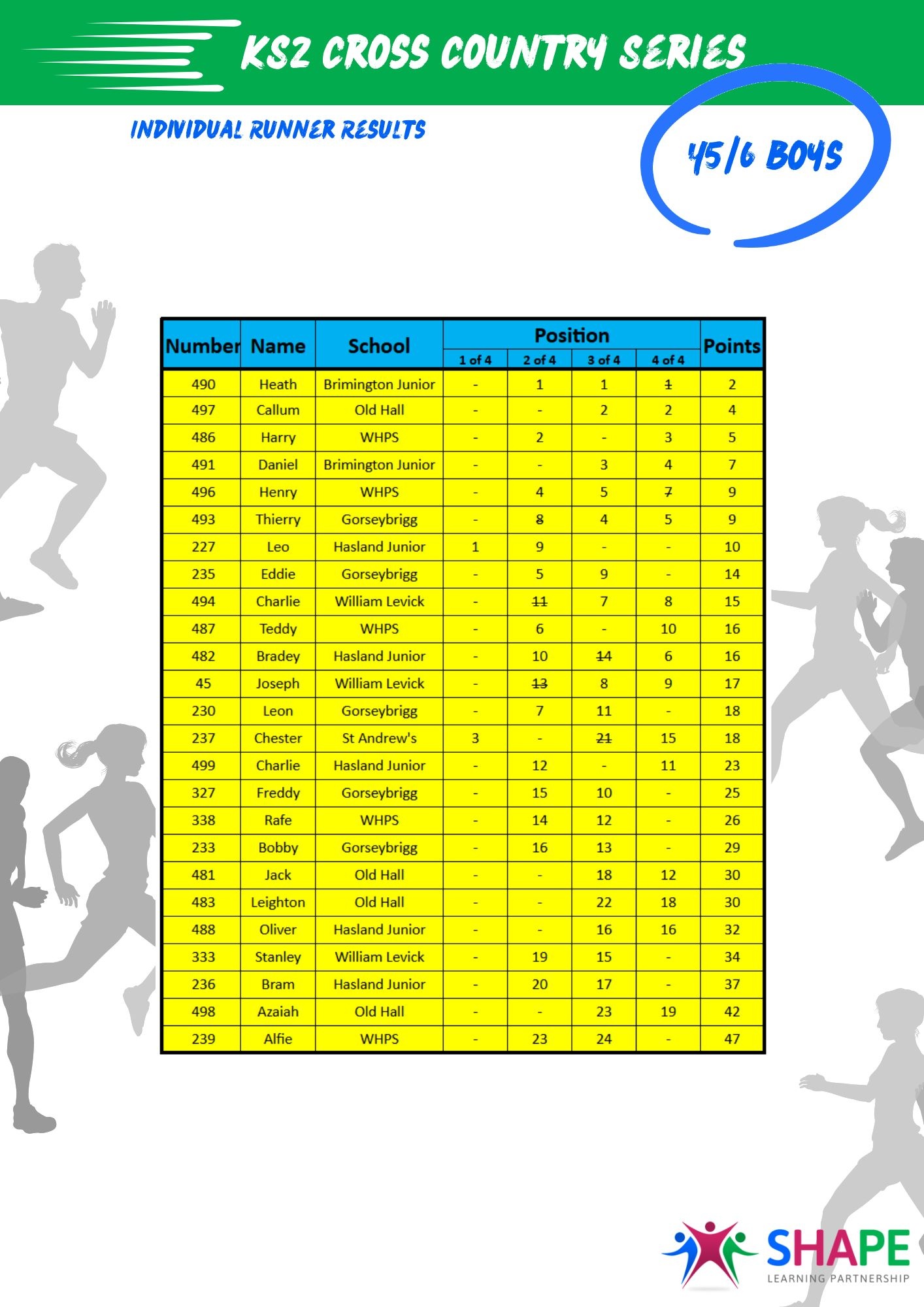 A huge well done to all participants! Special shout-out to Harvey from Hasland Junior, who completed all four Y3/4 races.